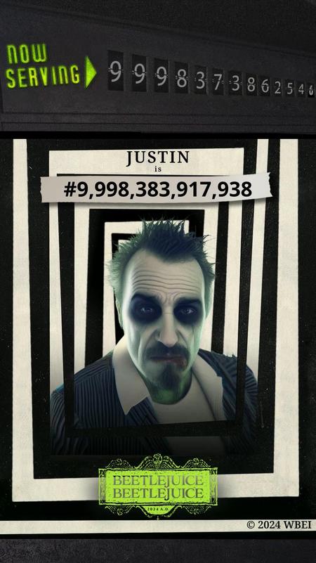 25th November 2024 Beetlejuice Beetlejuice / Warner Bros. Pictures / Digital Marketing / "Afterlife" AI Generator - Justin Theroux